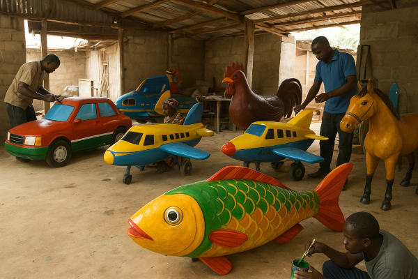 In parts of Ghana (notably among the Ga), funerals are elaborate social events with music, dancing, and processions. A striking modern feature is the “fantasy coffin” or custom-shaped coffin (e.g., fish, airplane, car) designed to represent the deceased’s life, profession, or aspirations — a vivid expression of identity and social display. Journalistic and ethnographic accounts document both local meaning and global interest in these coffins as art objects. AP News